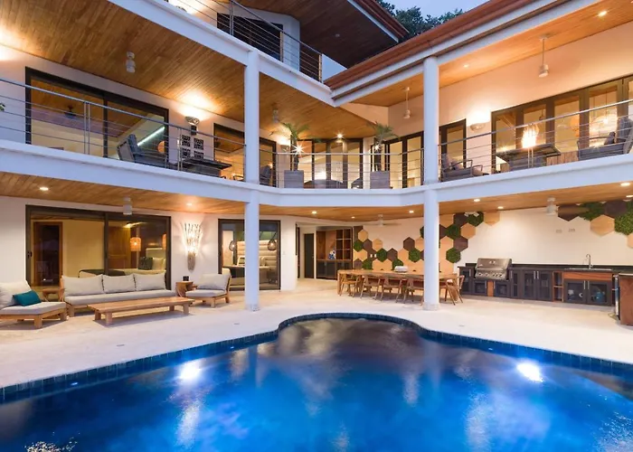La Villas In Sueño Private Jungle Hotel Manuel Antonio está situada a unos 3 km de La Selvita y ofrece senderismo, pesca y yoga para los huéspedes activos. Situada a unos 15 minutos en coche de la Marina Pez Vela, esta villa cuenta con una terraza con vistas a las montañas.